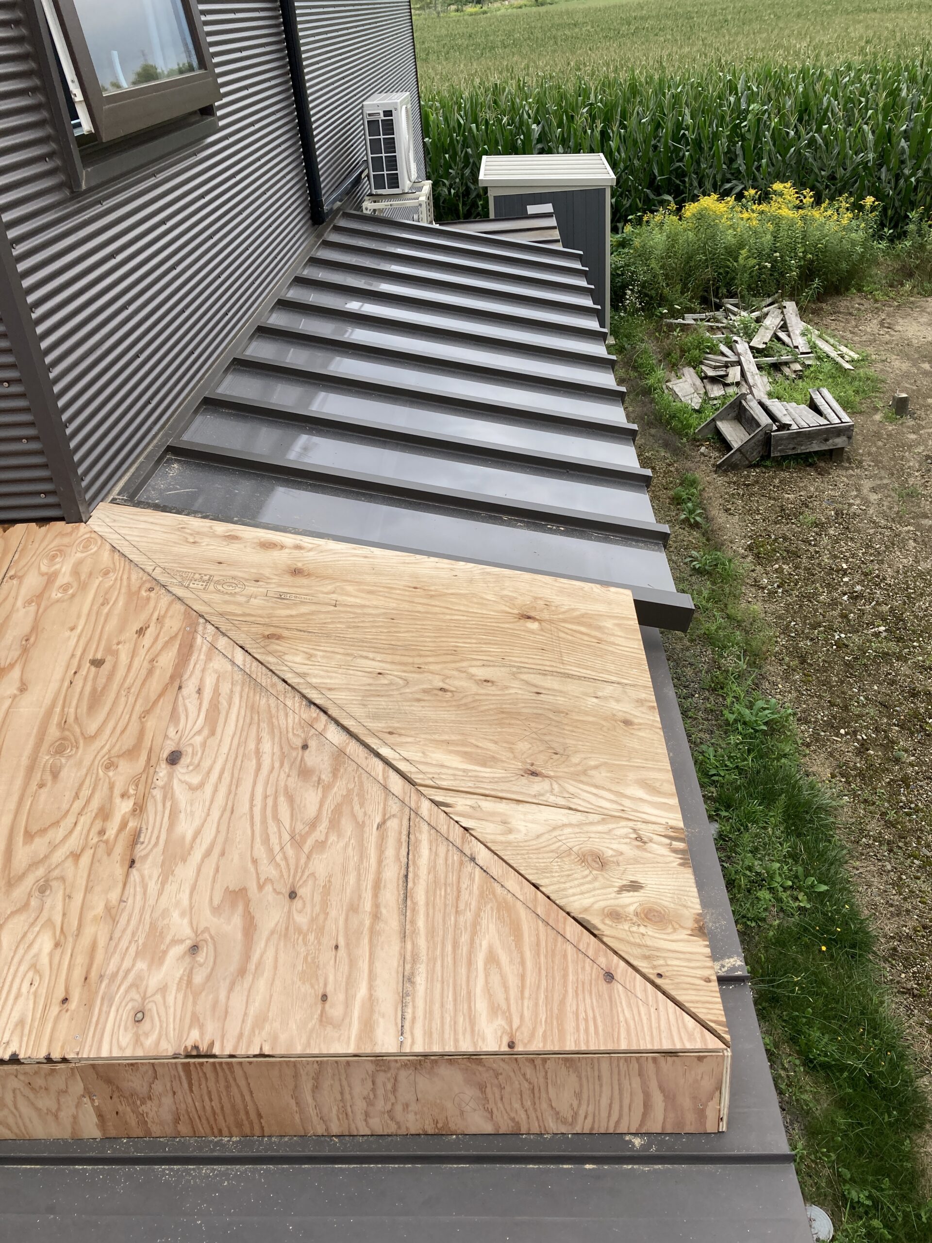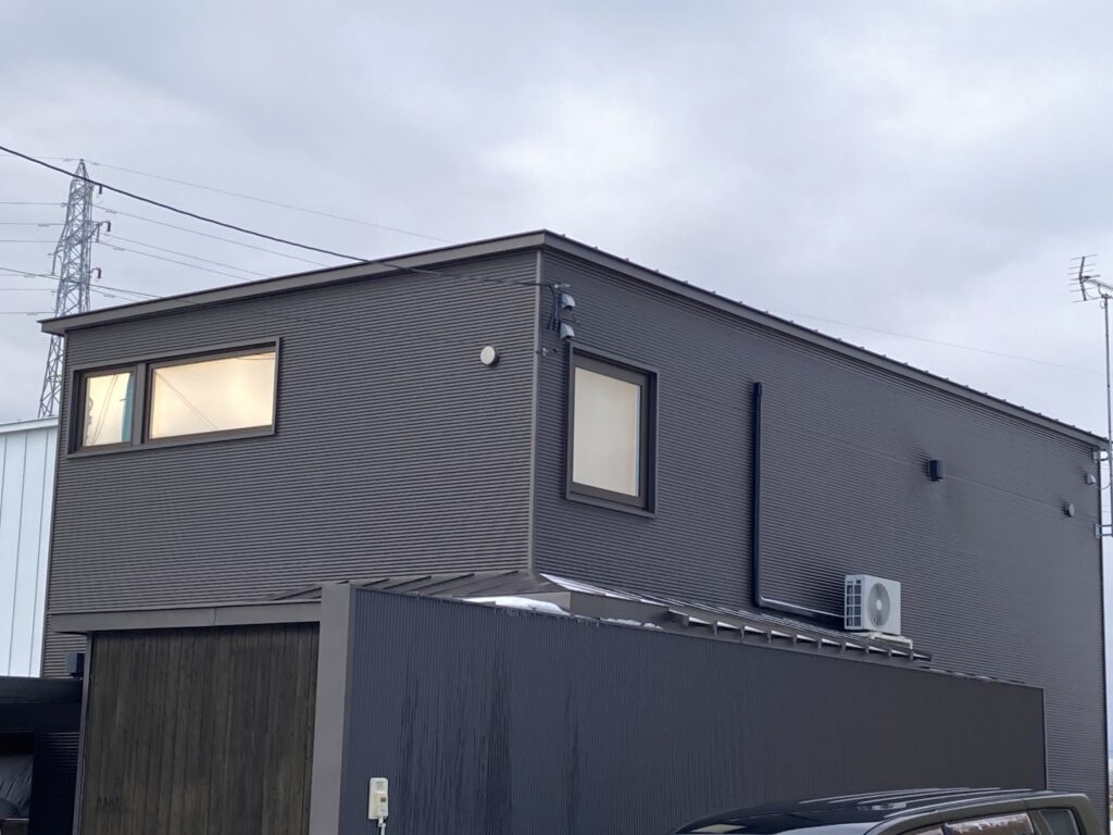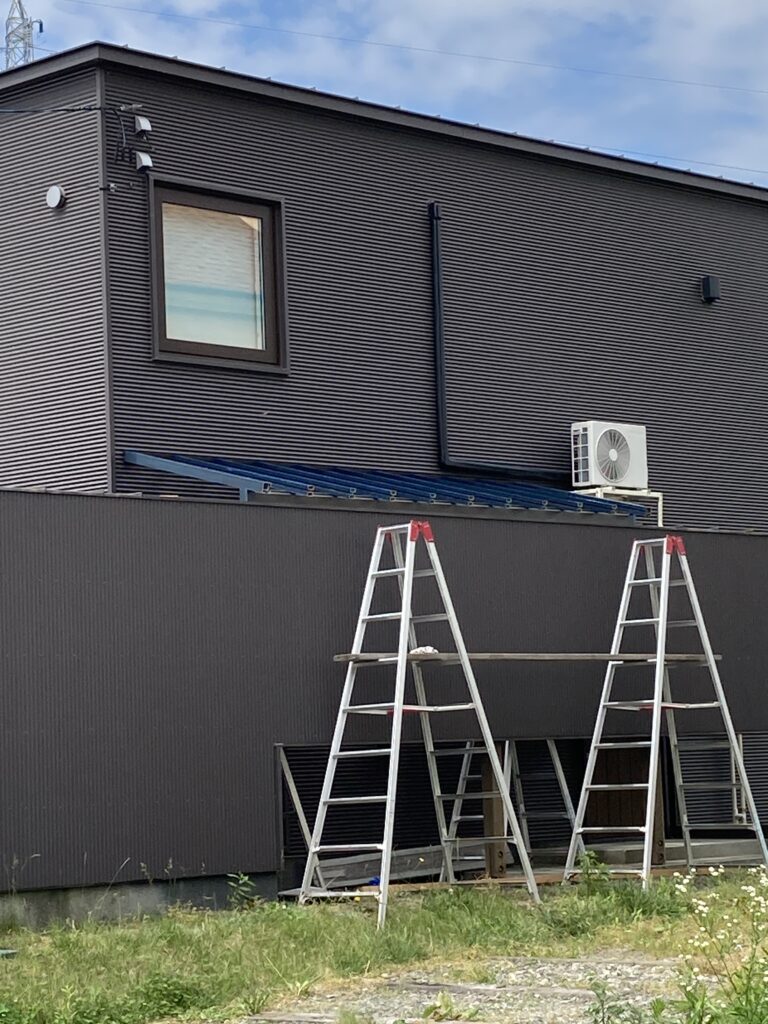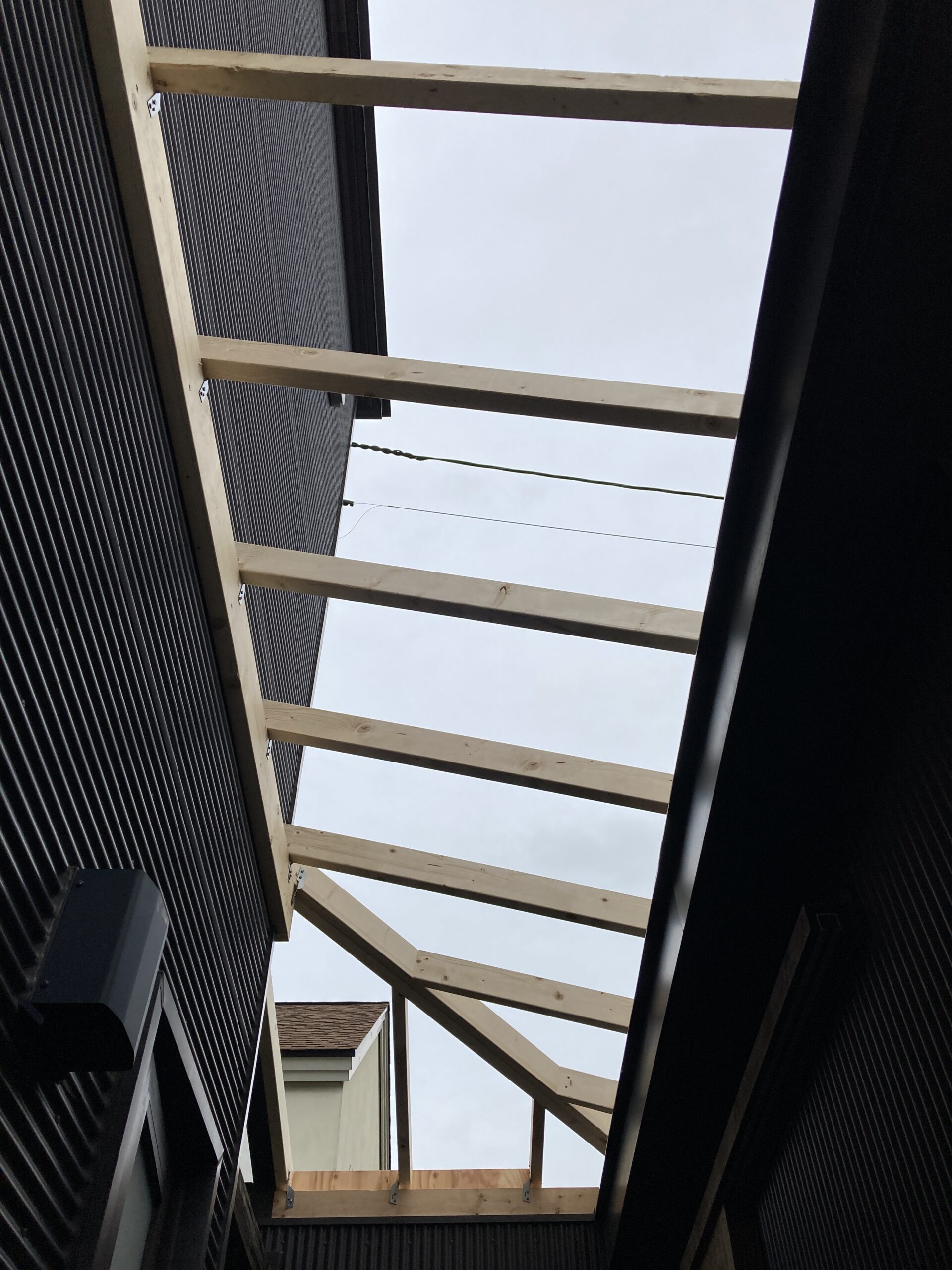 冬季間の降雪対策として、玄関のアプローチ部分にポリカーボネートと板金の組み合わせで屋根を設置しました。